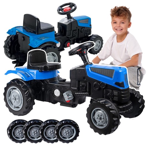 Traktor jest napędzany siłą mięśni dziecka. Podczas pedałowania napęd jest przekazywany poprzez tylną oś.