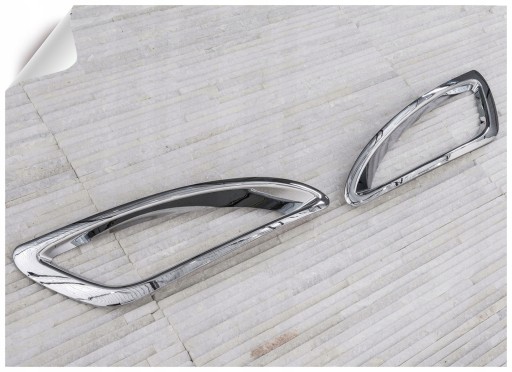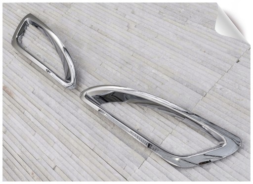 Nakładki lamp przeciwmgielnych, podkreślają luksusowy profil samochodu. W subtelny sposób nadają charakteru. Elementy zostały wykonane z wysokiej jakości tworzywa ABS. W zestawie dwie osłony na lampy przeciwmgielne (prawa i lewa). Łatwy i bezpieczny montaż, można go wykonać we własnym zakresie. Nakładki montowane są za pomocą taśmy dwustronnie klejącej Scotch 3M, zaaplikowanej wewnątrz nakładek. Wystarczy odkleić taśmę, odtłuścić miejsca montażowe benzyną ekstrakcyjną lub spirytusem, przyłożyć w odpowiednie miejsce i docisnąć. Nakładać w dodatnich temperaturach od 18 st. C, w razie potrzeby miejsca klejenia podgrzać (np.suszarką).