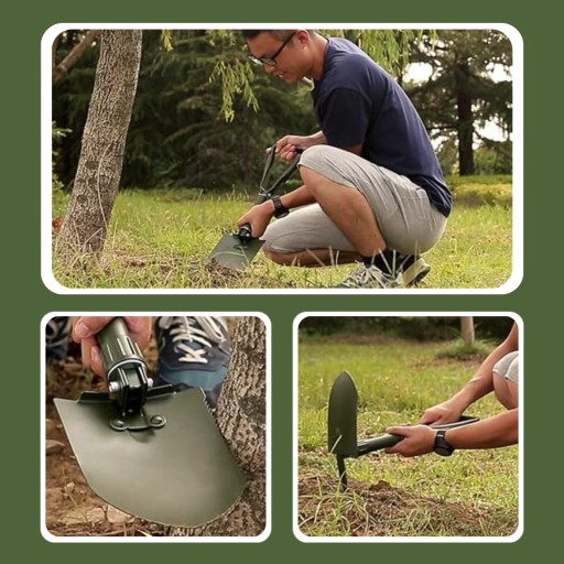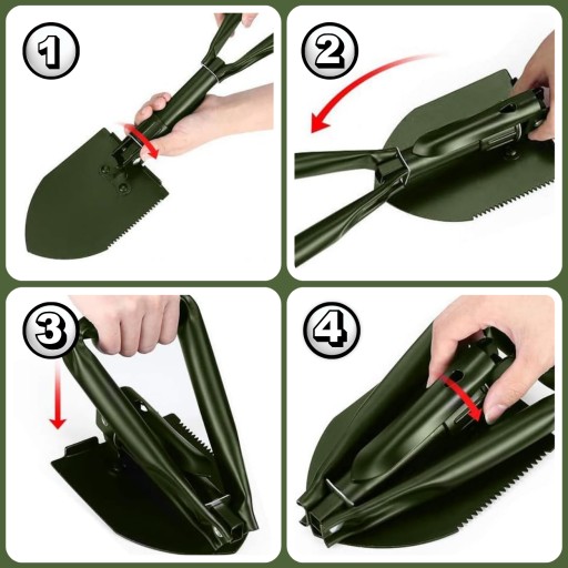 ✔️Składalna konstrukcja✔️Dzięki możliwości złożenia saperki oraz redukcji rozmiarów, narzędzie staje się łatwe do transportowania i przechowywania, co ułatwia mobilność użytkownika w różnych warunkach terenowych.