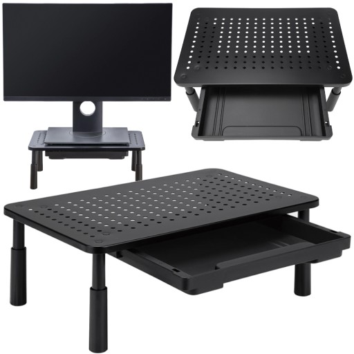 PODSTAWKA POD MONITOR LAPTOPA PODSTAWA PÓŁKA CZARNA REGULOWANA NA BIURKO