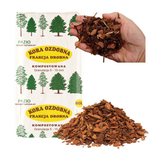 Wysokiej jakości kompostowana, kora sosnowa do ściółkowania wszystkich drzew i krzewów iglastych, przygotowana została tak, by zapewnić roślinom maksymalny rozwój.