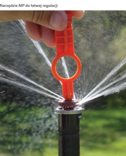 - Redukcja kąta i promienia za pomocą dedykowanego klucza do dysz MP Rotator Hunter