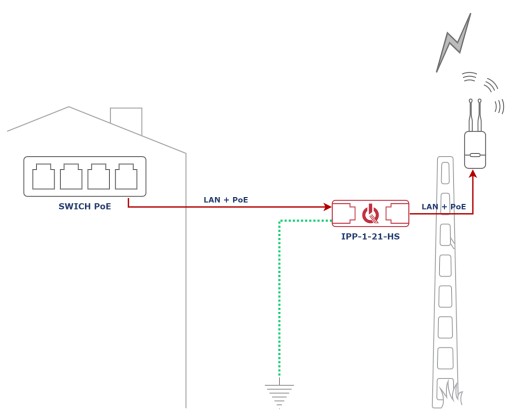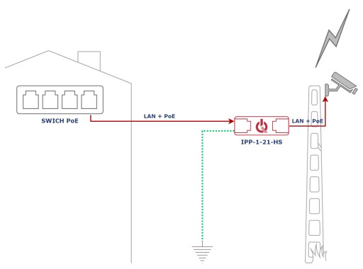 Moduły serii IPP ograniczają przepięcia w sieci ETHERNET przejmując chwilowy impuls udaru elektrycznego. Moduły współpracują ze wszystkimi standardami zasilania PoE oraz z sieciami Gigabit Ethernet. Urządzenia działają bez podłączonego uziemienia ograniczając przepięcia powstałe między żyłami, dołączenie uziemiania pozwala na odprowadzenie ładunku do ziemi co zwiększa skuteczność ochrony.