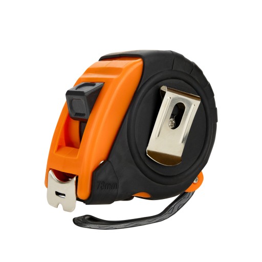 - Metalowym klipsem do przypinania, dzięki któremu miarkę można mieć zawsze przy sobie, utwierdzoną do ubrania roboczego