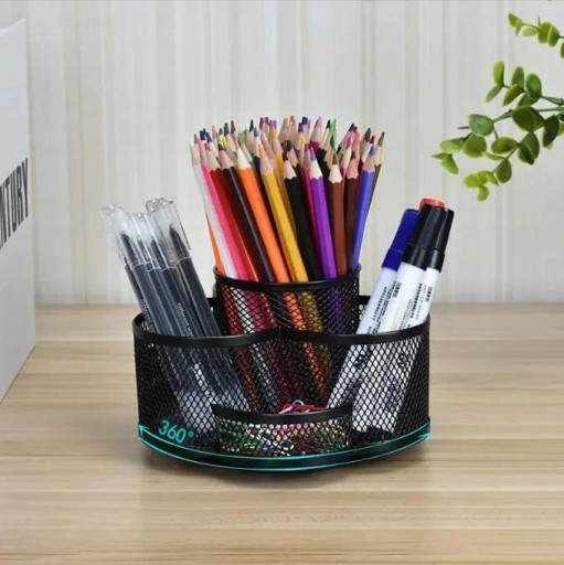 - wygodny w użytkowaniu - w dolnej części przybornika znajduje się obracana podstawka, która umożliwia obrót o 360 stopni. Dzięki temu mamy bardzo łatwy dostęp do wszystkich przechowywanych przedmiotów