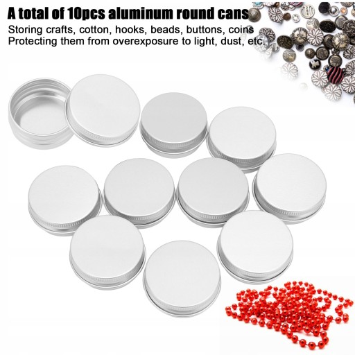 2. Pakiet zawiera: W sumie 10 sztuk aluminiowych okrągłych puszek, z gwintowanymi pokrywkami, aby zapobiec wyciekom, co jest bezpieczne i wygodne w użyciu.