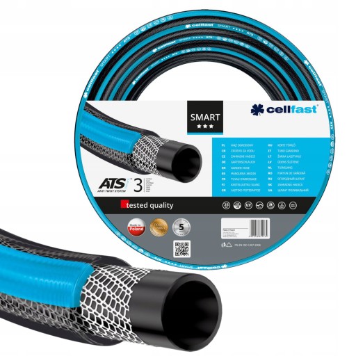 CELLFAST НЕСКРУЧИВАЕМЫЙ САДОВЫЙ ШЛАНГ SMART ATSV, 3-СЛОЙНЫЙ, 3/4 дюйма, 50 м, ПОЛИЦ.
