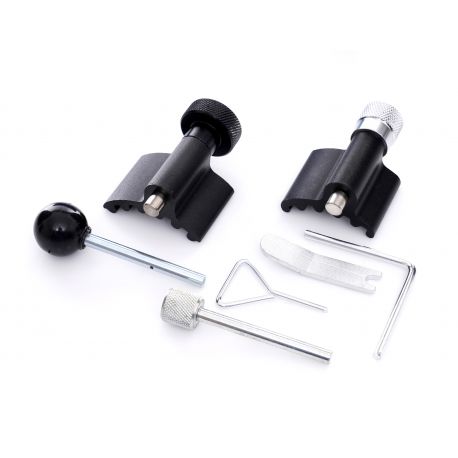 Profesjonalny przyrząd do blokowania kół rozrządu. Zestaw umożliwia unieruchomienie kół zębatych rozrządu w pozycji serwisowej, podczas wymiany paska rozrządu. Specjalny kształt blokad pozwala na precyzyjne ustawienie punktów kontrolnych zapłonu. Blokady unieruchamiają koło zębate rozrządu i wału korbowego oraz koło napinacza paska. Polecane do użytku zawodowego w specjalistycznych serwisach samochodowych. Całość zestawu zapakowana w praktycznej walizkę