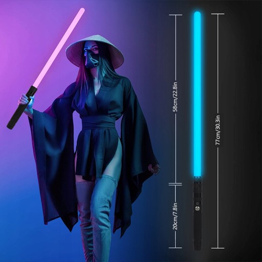 ⭐ Miecz świetlny o łącznej długości 77 cm jest idealny do cosplayu dzieci, imprez kostiumowych na Halloween, miłośników filmów i idealny prezent dla dzieci.