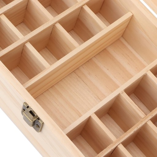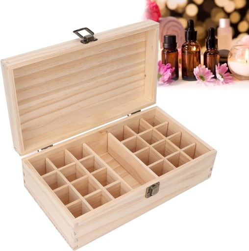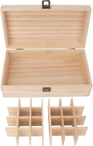 ① Bambusowe Pudełko do Przechowywania Olejków Eterycznych, 24 Siatki Etui na Zapachy, Organizer do Aromaterapii Pojemnik na Lakier do Paznokci Pojemnik na Zapachy Chroń②Konstrukcja z 24 siatkami: To pudełko do przechowywania zawiera 24 małe siatki i dużą siatkę, zapewniając wystarczająco dużo miejsca na codzienne potrzeby. Został specjalnie zaprojektowany, aby pomieści? olejki eteryczne, zapewniając ich dobrą organizację i ochronę przed uszkodzeniem.③Tradycyjna struktura wpuszczana i czopowa: w pudełku zastosowano tradycyjny proces wpuszczany i czopowy, co świadczy o skrupulatnym wykonaniu. Precyzyjne połączenia blokujące zapewniają solidną i bezpieczną konstrukcję. To połączenie tradycyjnych technik i nowoczesnego designu daje w rezultacie pudełko do przechowywania najwyższej jakości.④Znakomity kunszt: pudełko do przechowywania zostało starannie zaprojektowane z zaokrąglonymi narożnikami, co zapewnia gładki wygląd. Proces dokładnego polerowania zapewnia wyrafinowaną teksturę. Dzięki temu opakowanie na olejki eteryczne będzie nie tylko estetyczne, ale także trwałe.⑤Materiał najwyższej jakości: ten pojemnik do przechowywania, wykonany z drewna sosnowego, ukazuje piękno słojów drewna. Jest starannie wykonany i wypolerowany, dzięki czemu jest trwały i bezpieczny w użytkowaniu przez długi czas. Miedziana klamra dodaje elegancji i zwiększa ogólną trwałoś?.