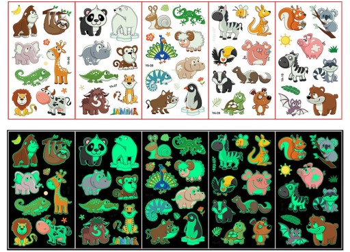 МОЮЩИЕСЯ ТАТУ СВЕТЯЩИЕСЯ В ТЕМНОТЕ ЖИВОТНЫЕ 5 ЛИСТОВ