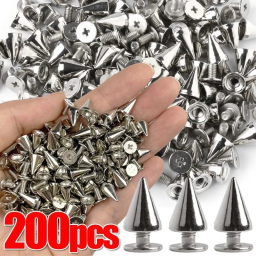 200/10 шт. серебряные конические шипы, металлические шпильки с завинчивающейся головкой, сделай сам, ручная работа в стиле панк