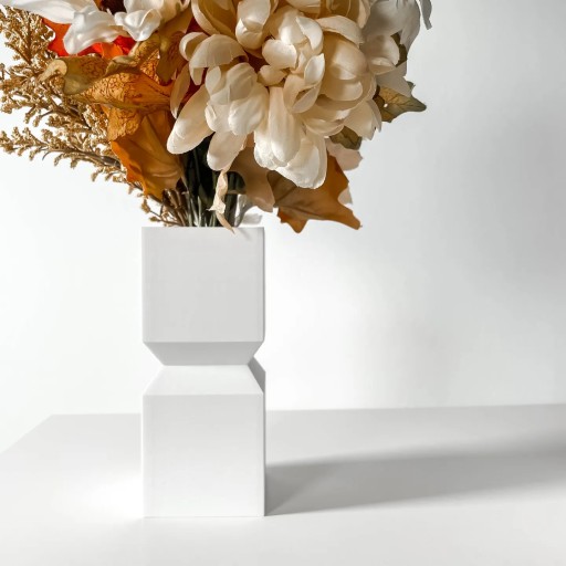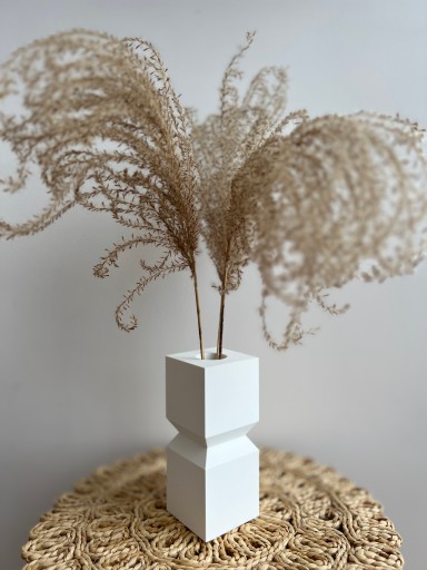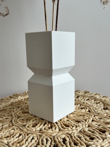 Ten wyjątkowy wazon został wydrukowany w technologii druku 3D. Ma lekką i bardzo ciekawą konstrukcję, a dzięki swojemu unikalnemu kształtowi idealnie prezentuje się sam jak i z kwiatami. Pięknie pasuje zarówno do kwiatów sztucznych jak i modnych suszonych traw. Jest też idealny do kwiatów LEGO, które zyskują ostatnio na popularności. Ale nawet pusty wygląda bardzo efektownie, stanowi designerski element dekoracyjny i będzie nietuzinkową ozdobą twojego wnętrza.