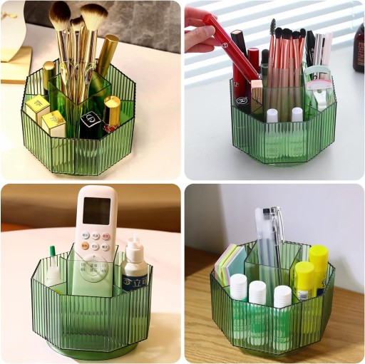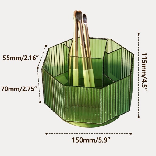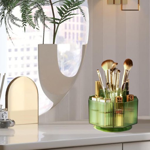 ① Obracany o 360° pojemnik do przechowywania makijażu, wielofunkcyjny organizer do makijażu, nadaje się do przechowywania pędzli do makijażu, lakieru do paznokci, błyszczyka do ust, tuszu do②Obrotowy organizer do makijażu o 360° - ten organizer na kosmetyki jest wyposażony w obrotową podstawę, którą można obraca? o 360 stopni, aby umożliwi? łatwy dostęp do wszystkich produktów do makijażu. Gładki i wyra?ny design jest obszerny i prosty i można go łatwo umieści?.③[Wysokiej jakości materiał] Pudełko do przechowywania makijażu jest wykonane z materiału PET, który jest bezpieczny i nietoksyczny, łatwy do czyszczenia, stylowy i piękny. Podwójne magnetyczne obracające się koraliki na spodzie można bezpiecznie przechowywa? na stole, pogrubiony materiał, odporny na upadki i trwały.④[Fachowe wzornictwo] Jasnozielony obrotowy pojemnik do przechowywania pędzli kosmetycznych z 5 otwartymi przegródkami, niski ze wszystkich stron i wysoko pośrodku zapewnia dobrą widocznoś?, można łatwo oddzieli? i przechowywa? różne przedmioty, jest przejrzysty na pierwszy rzut oka. Idealny do uporządkowania kosmetyków lub przyborów biurowych.⑤[Nie wymaga montażu] Nasz organizer do makijażu nie wymaga montażu i jest łatwy w użyciu. Wystarczy obróci? organizer w lewo i w prawo, aby przechowywa? lub wyją? przedmioty. Ten obrotowy o 360° organizer do makijażu utrzymuje wszystko pod ręką.