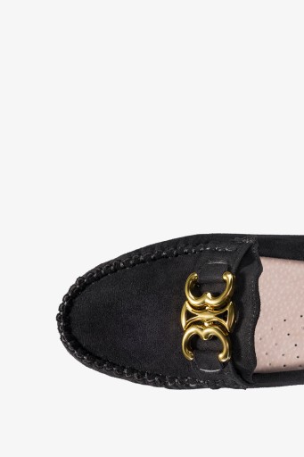 Czarne mokasyny damskie model D24X3-B zostały wykonane z wysokogatunkowego zamszu ekologicznego co gwarantuje doskonałą jakość, wygodę i dopasowanie do stopy. Przejdź do świata klasy i wyrafinowania z naszymi mokasynami. To prawdziwe arcydzieło dla każdej kobiety ceniącej sobie eleganckie, a zarazem wygodne obuwie. Płaska podeszwa zapewnia komfort noszenia przez cały dzień. Bez względu na to, czy przemierzasz ulice miasta, czy spędzasz dzień w biurze, nasze mokasyny gwarantują maksymalny komfort. Płaska podeszwa minimalizuje obciążenie stawów, co czyni je idealnymi dla tych, którzy są w ciągłym ruchu. Obuwie wsuwane jest proste w zakładaniu i zdejmowaniu co sprawia, że są one doskonałym wyborem dla tych, którzy cenią sobie prostotę i funkcjonalność w jednym. Skórzana wkładka dopasowuje się do naszego kształtu stopy, tym samym zapewniając nam przyjemność z chodzenia. Złota ozdoba dodaje mokasynom niepowtarzalnego uroku, to wyrafinowany detal, który nadaje mu dodatkowej klasy i wyróżnia go na tle innych. Zaokrąglony czubek jest nie tylko modny, ale także zapewnia dodatkową przestrzeń dla palców, oferując pełen komfort podczas noszenia. Lekkość tych mokasynów gwarantuje, że czujesz się, jakbyś chodziła na chmurkach. Są doskonałym towarzyszem na długie dni pełne aktywności. Postaw na błysk z naszymi wyjątkowymi mokasynami.