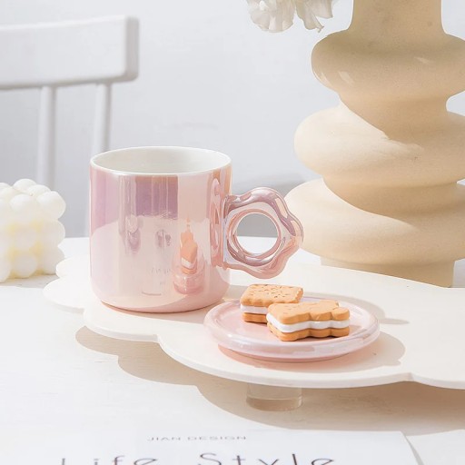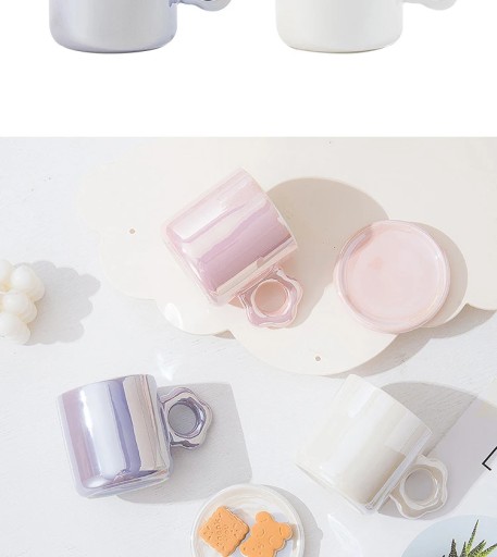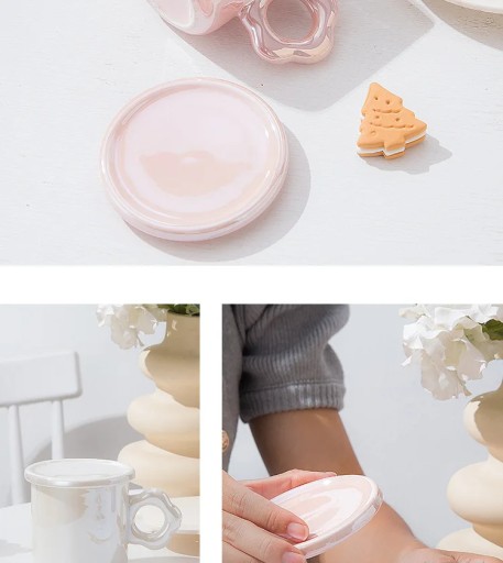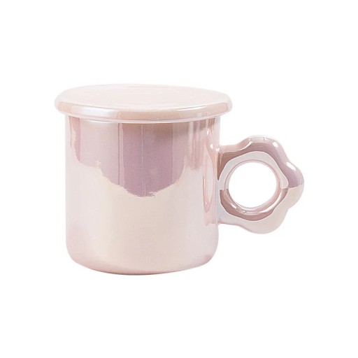 Симпатичная керамическая кружка для воды с крышкой, простая кофейная чашка с цветочной ручкой, бытовая