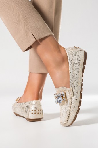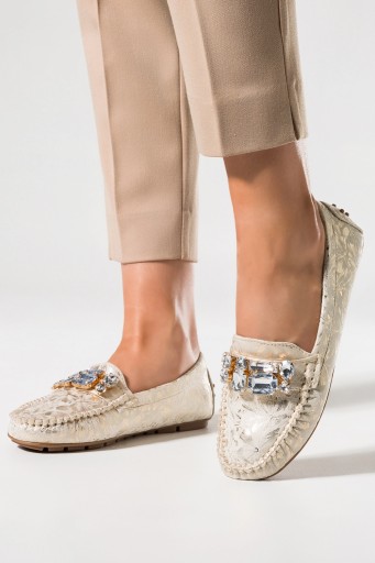 MOKASYNY PÓŁBUTY DAMSKIE PŁASKIE WSUWANE OZDOBNE KRYSZTAŁKI BEŻOWE