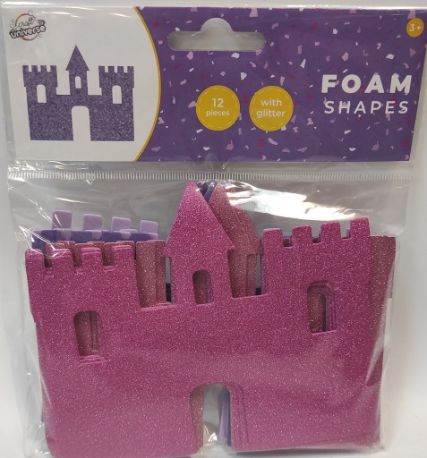 Opakowanie zawiera 12 sztuk brokatowych, piankowych naklejek w różnych kolorach.