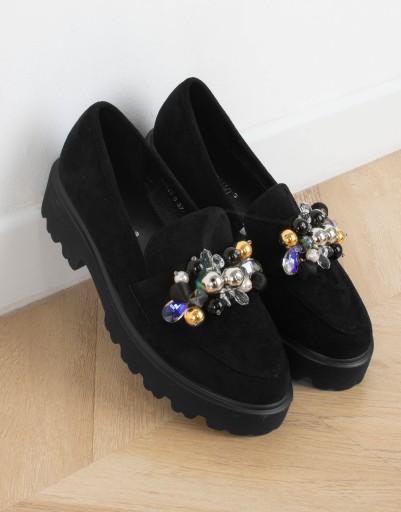 ЧЕРНЫЕ ЗАМШЕВЫЕ ЛОФЕРЫ С КРИСТАЛЛАМИ 39