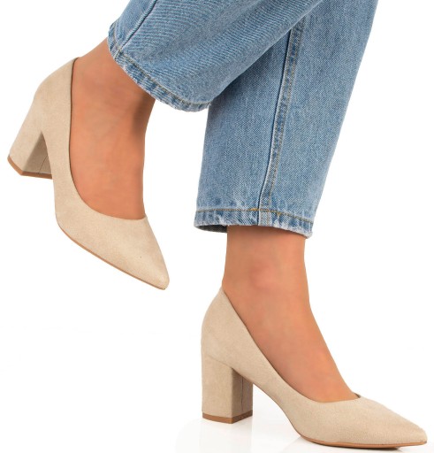 CZÓŁENKA NA GRUBYM SŁUPKU BEŻOWE W SZPIC KLASYCZNE SZPLIKI 40