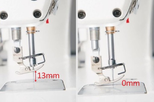 Ten model maszyny do szycia otrzymał silnik krokowy do regulacji długości ściegu oraz napęd ryglowania, co pozwala na regulację długości ściegu z dokładnością do 0,1 mm.