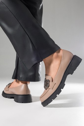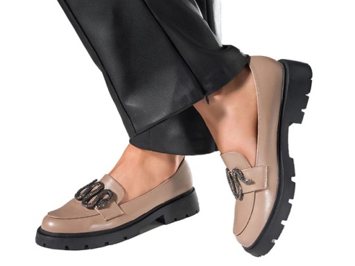Beżowe mokasyny damskie model D24X6-BE zostały wykonane z wysokogatunkowej skóry ekologicznej co gwarantuje doskonałą jakość i dopasowanie do stopy. Odkryj ponadczasowy styl i wyrafinowanie dzięki najnowszemu fasonowi w naszej kolekcji. Totalny HIT! Te bajeczne mokasyny są idealnym połączeniem klasycznej elegancji i nowoczesnych trendów, stworzone z myślą o kobietach ceniących sobie zarówno komfort, jak i unikalny design. Charakteryzują się zaokrąglonym czubkiem, który zapewnia swobodę palcom. Ponadto, dodatek czarnej, bieżnikowanej platformy nie tylko wzbogaca wygląd, ale też gwarantuje stabilność i przyczepność na każdej nawierzchni, co czyni je idealnym wyborem niezależnie od pogody czy okoliczności. Subtelna ozdoba w kształcie węża dodaje odrobinę dzikiego akcentu, jednocześnie zachowując estetykę. Ta delikatna dekoracja sprawia, że obuwie staje się nietuzinkowym dodatkiem do Twoich outfitów dodając strojowi niebanalnego charakteru. Są doskonałym wyborem dla kobiet, które cenią sobie wygodę, ale nie chcą rezygnować ze stylu. Możesz je nosić zarówno do biura, jak i na weekendowe wypady – ich uniwersalność i komfort sprawiają, że staną się nieodłącznym elementem Twojej garderoby.