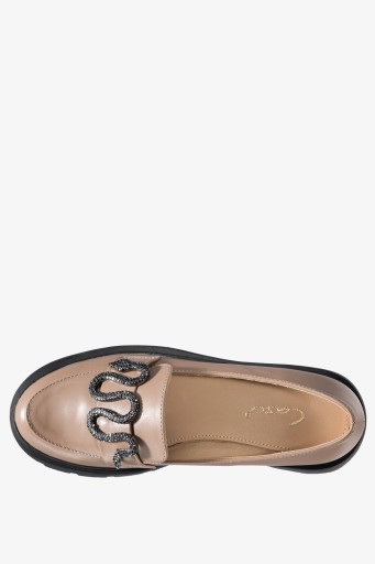 MOKASYNY DAMSKIE PÓŁBUTY WSUWANE NA PLATFORMIE Z MODNYM OZDOBNYM WĘŻEM