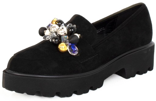 MOKASYNY PÓŁBUTY CZARNE ZAMSZOWE Z KRYSZTAŁKAMI LOAFERSY 39