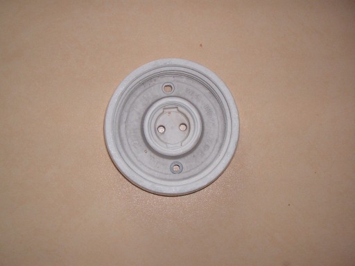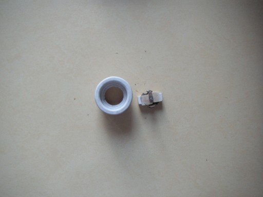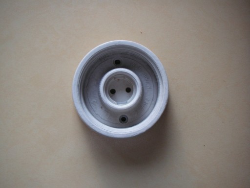 Oprawa porcelitowa 220 V na żarówkę z gwintem E 27. Przystosowana do żarówek o mocy 100 W. Średnica podstawy13 cm, średnica pod oprawę, klosz 12 cm, wysokość 4,5 cm, średnica na klosz o średnicy 100 mm. Styk do żarówki niezależny, wyjmowany. Rzecz używana. Lata 70-te ubiegłego stulecia.