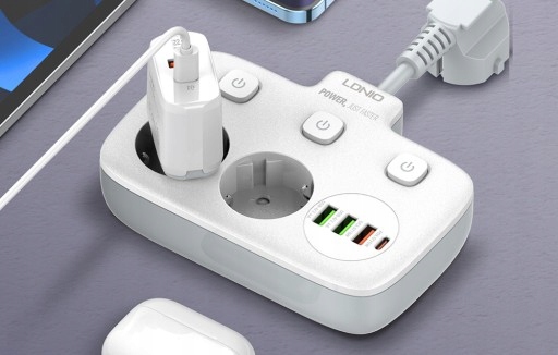 Wyposaż się w praktyczną listwę zasilającą i ładuj nawet 6 urządzeń jednocześnie. LDNIO SE2435 została wyposażona w dwa gniazda AC, trzy porty USB i jeden port USB-C. Szybko odnawia energię smartfonów i tabletów zgodnych z protokołami PD3.0 oraz QC3.0, ponadto wbudowany czujnik napięcia zapewnia optymalny prąd, wydłając tym samym żywotność sprzętów elektronicznych