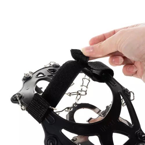 - NIERDZEWNE ŁAŃCUSZKI I WZMOCNIONA PODPIĘTKA – wykonane ze stali nierdzewnej. Są odporne na rdzę i korozję. Wystarczy naciągnąć elastyczny kołnierz i nałożyć na podeszwę buta. Nasze raczki nie zniszczą obuwia, gdyż idealnie przylegają do butów, a wzmocnione podpiętki zapewniają stabilność zwłaszcza podczas schodzenia z górki.