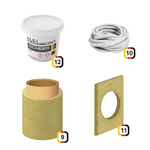 12) Klej ceramiczny kwaso-żaroodporny gwarantujący szczelne oraz mocne połączenie wkładów kominowych