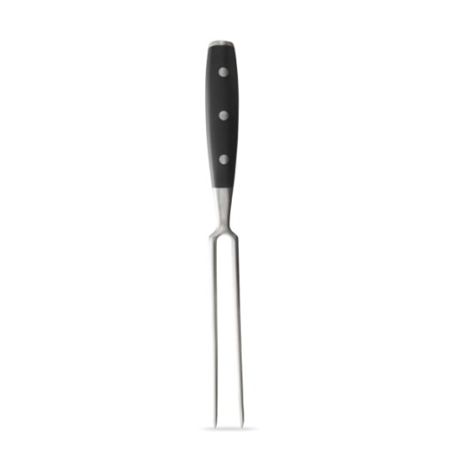 - WYGODNY - Solidny uchwyt wykonany z wysokiej jakości stali nierdzewnej i tworzywa ABS w kolorze czarnym z 3-punktowym nitowaniem ze stali. Uchwyt nie ślizga się w dłoni. Niezwykle poręczny i wygodny w użytkowaniu. Dzięki odpowiedniemu wyprofilowaniu widelec dobrze i stabilnie leży w dłoni.
