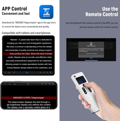 Uszkodzony teleprompter NEEWER X1 Pro Teleprompter do fotografowania z aparatem lub smartfonem, 9 cali, w pełni Metaliczny, pilot zdalnego sterowania przez NEEWER Teleprompter App Połączenie Bluetooth, Uwaga Kompatybilny z iPhone