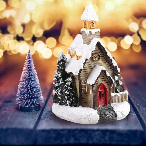 2xResin Christmas Scene Snow House LED Village Set Dekoracja stołu Prezent B
