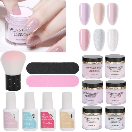 Funkcja:1. Zestaw do zanurzania paznokci, w tym 6 kolorów proszku do zdobienia paznokci, a także niezmywalny lakier nawierzchniowy, podkład, środek osuszający, płyn do czyszczenia pędzli, akcesoria do pędzli itp., kompletny zestaw, zapewniający lepsze wrażenia ze zdobienia paznokci.