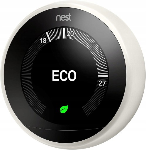 Termostat Nest Learning trzeciej generacji jest cieńszy, bardziej elegancki i jeszcze piękniejszy. Dzięki większemu, ostrzejszemu wyświetlaczowi i dalekiemu wzrokowi możesz zobaczyć czas lub temperaturę ustawioną w całym pokoju. A teraz kontroluje nawet twój zbiornik ciepłej wody. Termostat Nest uczy się temperatury, którą lubisz, a następnie sam programuje. Wykorzystuje wbudowane czujniki, aby potwierdzić, że nikt nie jest w domu, i wie, ile czasu zajmuje ogrzanie domu, abyś czuł się komfortowo, gdy tam dotrzesz. Kiedy wychodzisz, wyłącza się, dzięki czemu oszczędzasz energię. Możesz zobaczyć swoją historię energii za pomocą aplikacji Nest, aby sprawdzić, ile zaoszczędziłeś.