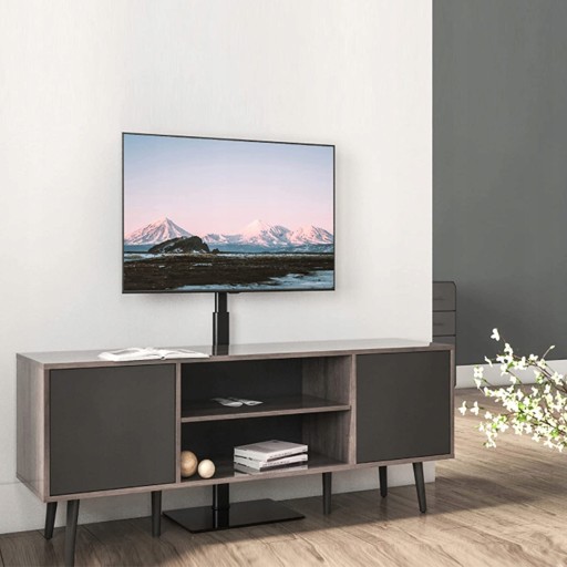 FITUEYES Stojak pod telewizor, stojak pod telewizor, z regulacją wysokości, wychylny, do telewizorów płaskich o przekątnej od 32 do 60 cali, maks. obciążenie do 30 kg, VESA 600 x 400, czarny