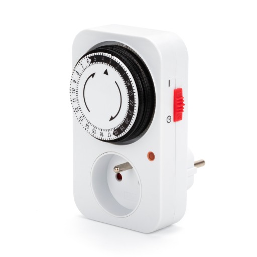 Jego biała obudowa z uziemieniem zapewnia bezpieczeństwo, a prosta obsługa polegająca na wciskaniu pinów i ustawianiu przełącznika pozwala na łatwe programowanie pracy podłączonych urządzeń. Dodatkowo, czerwona dioda informuje o aktywacji urządzenia, a opcja ciągłej pracy zwiększa funkcjonalność programatora.