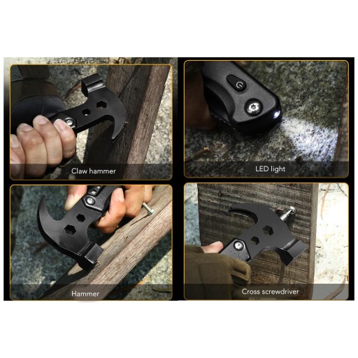 1. Wielofunkcyjny: wielofunkcyjny młotek do użytku na zewnątrz, może z łatwością wykonywać motykę, odgarnianie, młotkowanie, cięcie, siekanie i inne funkcje.