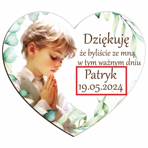 Ten uroczy personalizowany magnes z nadrukiem stanowi wyjątkowe podziękowanie dla gości za ich udział w uroczystości Komunii Świętej. Dzięki niemu można wyrazić wdzięczność w uroczysty i praktyczny sposób.