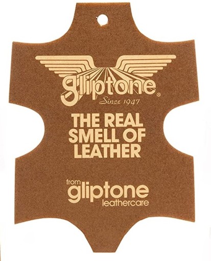 NOWY, ŚWIEŻY odświeżacz (mały 7cm x 10cm) o zapachu najwyższej jakości nowej skóry, renomowanej angielskiej firmy GLIPTONE.