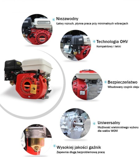 Silnik wykonany jest z wysokiej jakości materiałów w technologii OHV. Przeznaczony do pomp, zagęszczarek i innych urządzeń spalinowych. Nowy ulepszony silnik o mocy 6,5 KM pasuje idealnie do pomp, zagęszczarek i innych urządzeń spalinowych.