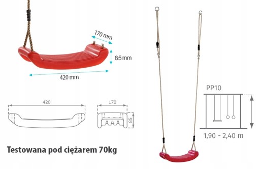 ✔️Wyposażona w bardzo wytrzymałe sznury, gwarantujące bezpieczeństwo wytrzymujące obciążenie maksymalnie do 100 kg, dlatego może się na niej huśtać dziecko i osoba starsza.