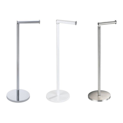 Sprytnie zorganizowany, otwarty stojak łazienkowy na papier toaletowy. Pomieści aż 4 rolki i sprawi, że papier będzie zawsze w zasięgu ręki. Wyposażony w rozkładany uchwyt do zawieszenia rolki. Stabilna, okrągła podstawa zapobiega przewróceniu. Wysokiej jakości, błyszcząca stal nierdzewna.