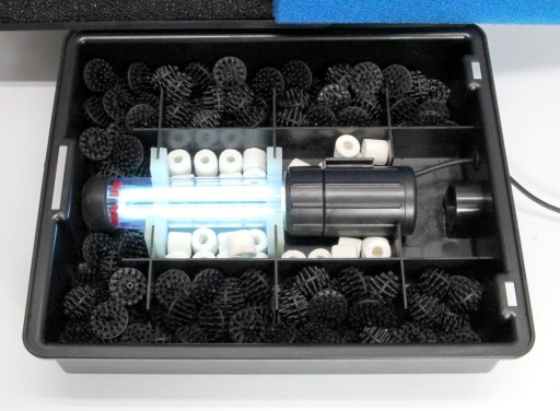 ✅ duży pojemnik filtracyjny zawiera dwa rodzaje gąbek filtracyjnych do filtracji mechanicznej oraz bioballs oraz bio-ceramikę do podstawowej filtracji biologicznej i lampę UV-C do skutecznej sterylizacji wody