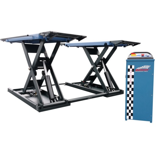 Dzięki zastosowaniu na każdym siłowniku dodatkowej "krótkiej nożycy" podnośnik działa z pełną mocą od samego dołu nie sprawiając kłopotu przy podnoszeniu niskich aut sportowych z czym zwykle miewają problemy standardowe podnośniki.