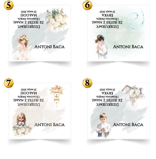 - Imię dziecka oraz datę komunii ( Małgosia 25 maja 2025 )