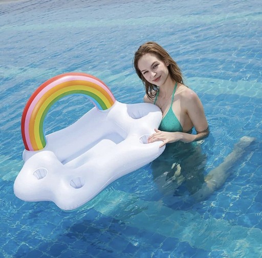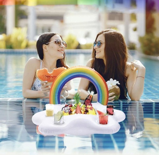 ✔️✔️ Tęczowy uchwyt na napoje: tęczowy uchwyt na napoje na basenie sprawia, że ten nadmuchiwany uchwyt na napoje bardziej przyciąga wzrok. Bar basenowy jest idealny na imprezy przy basenie, imprezy na plaży i ciesz się latem
