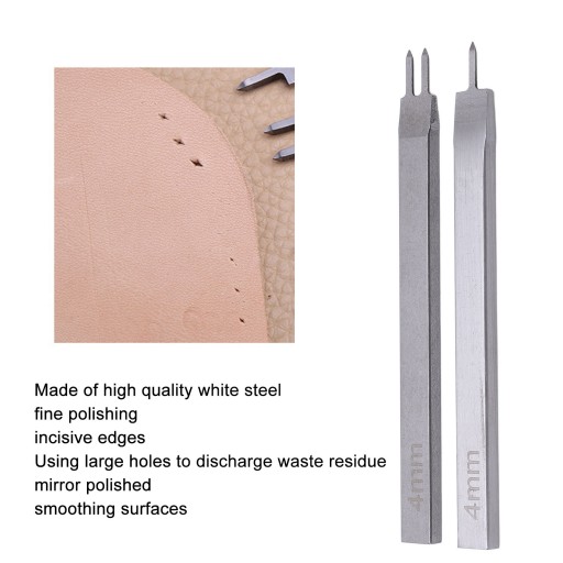 2шт. Долото для кожи со штифтом, белая сталь, 4 мм, с зазубренными краями 22